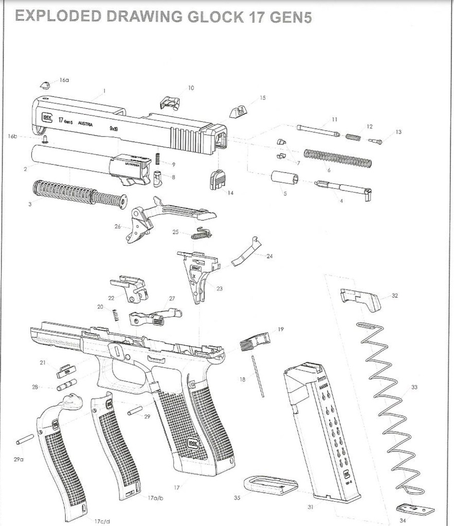 Взрыв-схема для заказа Запасных частей для пистолетов Glock Gen5